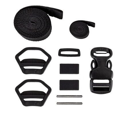 kratší a dlhší nylonový popruh, 2x rozdeľovač, 2x fixačný kolík, pracka,